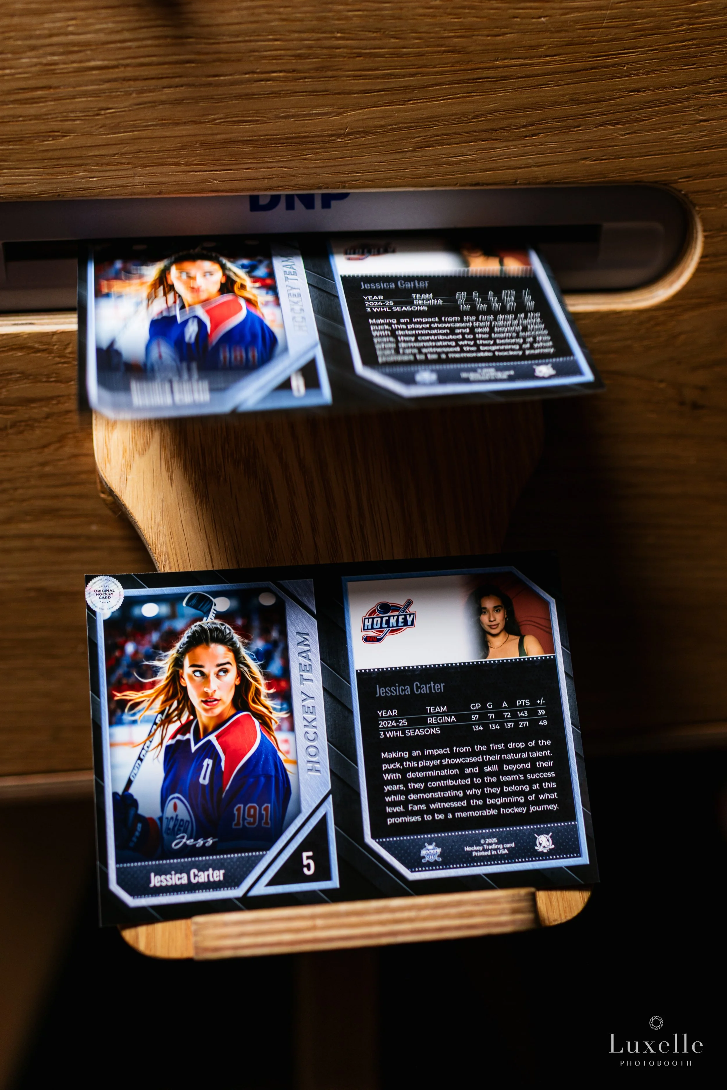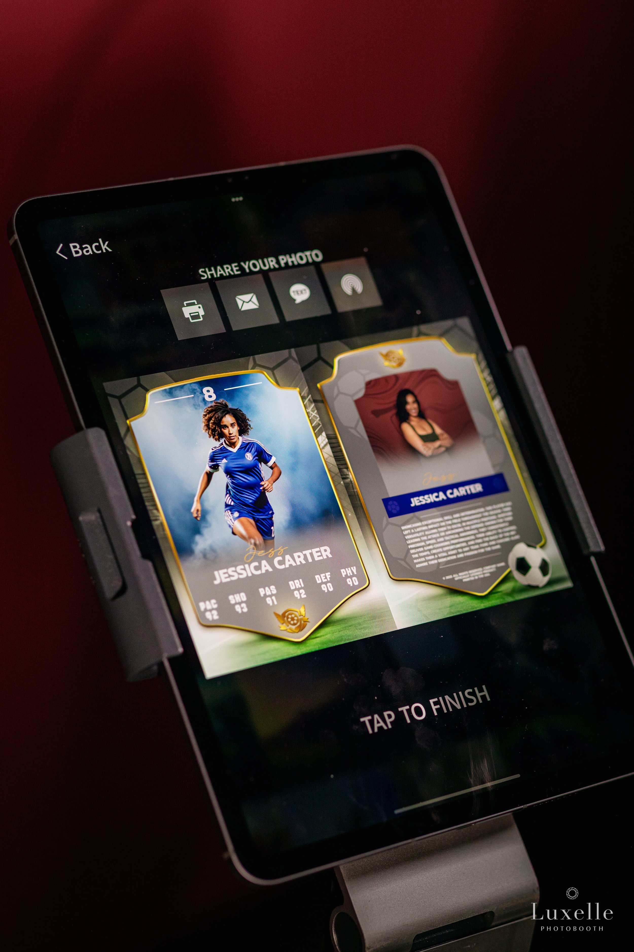 Guests step in, strike a pose, and instantly receive a custom trading card featuring their photo and event branding.